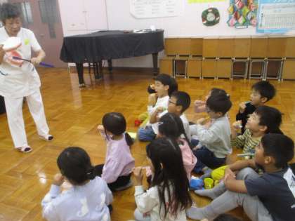 甘いものを食べてそのままにしておくとどうなるか人形劇をしながら教えて下さいました。