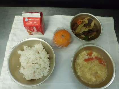 今日の給食は,麦ごはん・牛乳・焼肉・トマトと卵のスープ・みかんでした。大好きな焼肉。スープも残ることなくきれいに食べていました。暑い時,冷たい冷凍みかんはとてもおいしかったです。