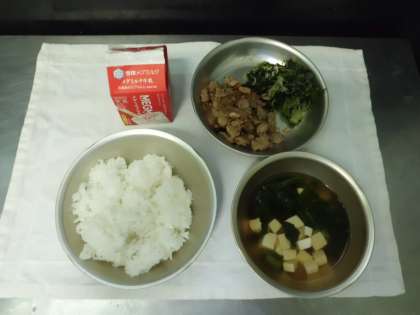 今日の給食は,とりめし・牛乳・だいこん葉とじゃこのいためもの・すまし汁でした。