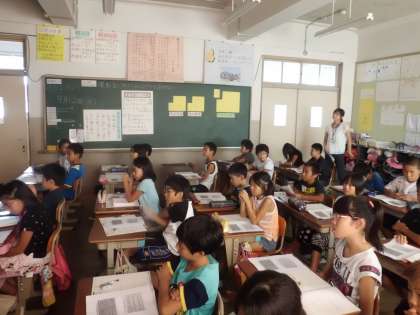 お仕事中にもかかわらず,4年生1組の教室に来ていただきました。