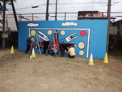 13日,14日の2日間,用務研究会の研修指導員の方々にお世話になり,サッカーのゴール板をきれいに塗っていただきました。学校に来ると真っ先にゴール板めがけてボールを蹴る子どもたちがたくさんいます。
