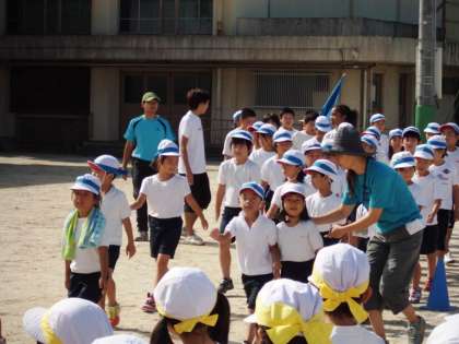 入場行進が終わった後,開会式の練習をしました。聖火,開会の言葉などに続き,全校ダンスの練習をしました。結構難しいダンスですが,1年生も大きく体を動かして元気いっぱいにできました。
