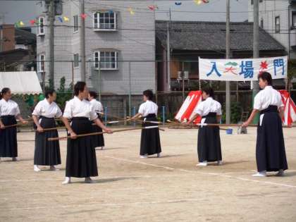 なぎなたの演武がありました。毎週火曜日夜に本校体育館で練習をされています。
