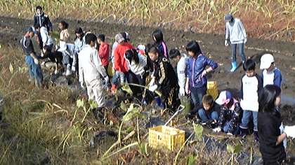 里芋を掘り出し,「いもぼた」を作り,のっぺい汁と一緒にいただきました。おいしかったです。