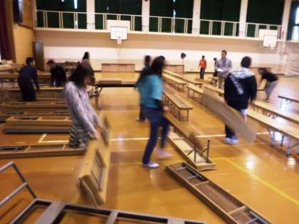21日(水)6時間目に体育館の場所設定や体育館前の掃除など,6年生が明日の準備をしてくれました。長椅子を運んだり,シートを敷いたり,動いてくれる6年生の姿は頼もしかったです。