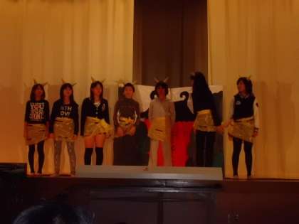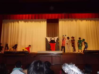 児童会の子どももえのき学級の劇にノリノリで参加してくれて,えのき学級のみんなもうれしかったようです。劇の途中の歌も,全校の児童が一緒に歌ってくれてにぎやかな劇になりました。みんな大満足の本番だったと思います。