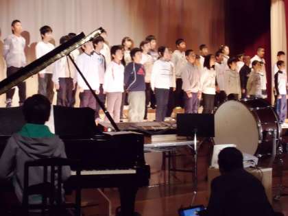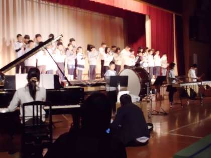 22日(木)の午前中に学習発表会が行われました。見ていた場所が固定でしたので,写真の角度が決まっていますが,プログラムに準じて紹介していきます。まず,5年生「音楽は世界をつなぐ」です。