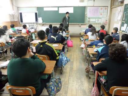 月に数回子どもたちの下校時に声をかけてくださる下鴨署のスクールサポーターの方2名をお招きして,4,5年生で非行防止教室の授業を行いました。
