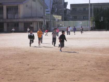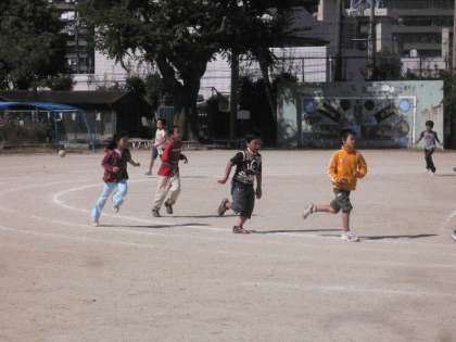 毎日、朝の会で遊びの係りが中間休みや昼休みに、みんな遊びをしようと提案してくれます。おにごっこ、ドッヂボール、リレーなどその日によって遊びは違うのですが、今日は、みんなでランニングをしようという提案でした。
