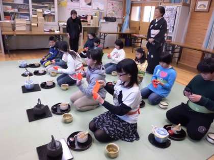 1年間茶道教室でご指導いただきました先生,いろいろとお世話になりました。ありがとうございました。また,放課後まなび教室を進めるにあたってご協力いただいた地域の皆様,ボランティアの学生の皆さんありがとうございました。今年度も無事に終了しました。深く感謝いたします。