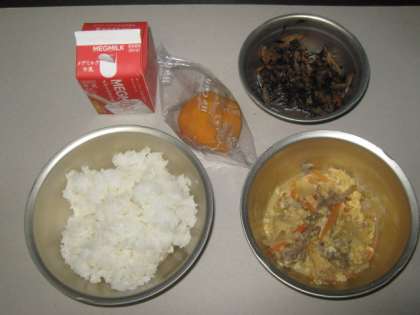 他人煮,ごぼうとひじきのいため煮ともごはんによくあって,残さいもなくよく食べていました。柿も甘くておいしかったです。