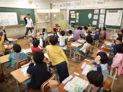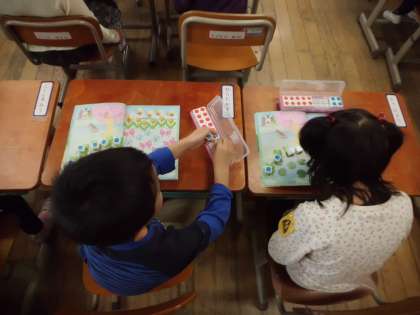 算数の勉強で数図ブロックを使いました。初めてブロックを使うので,興味津津の子どもたちでした。ついさわってしまうこともありましたが,先生の話を聞いてから,教科書の絵に対応させていました。これからも具体物を使った勉強が続きます。楽しみですね。