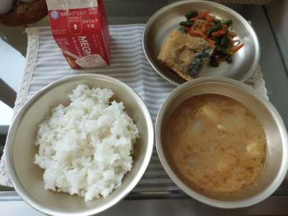 今日の献立は,胚芽米ごはん・牛乳・さばのたつたあげ・野菜のきんぴら・みそ汁です。