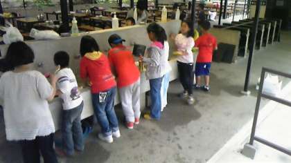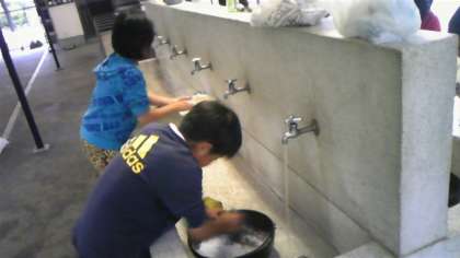 今日の夕食は,野外炊事でカレーを作ります。初めて経験する子どももたくさんいましたが,協力しておいしいカレーを作ることができました。家ではあまりすることのない片付けも頑張りました。
