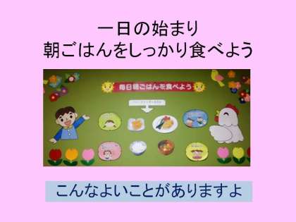 朝ごはんを食べることが,どのように子どもたちの生活にかかわっていくのか,子どもたち自身にしっかりと学ばせたいと考えています。