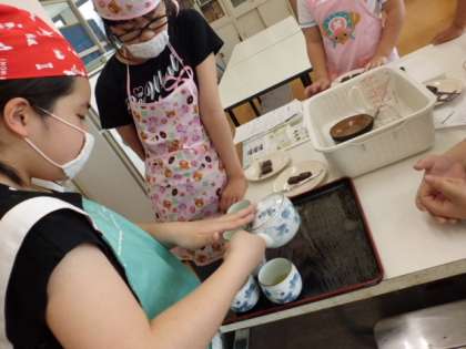 はじめての調理実習は、お茶の入れ方を学習しました。