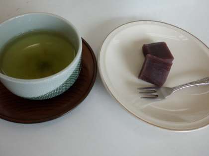 できたお茶は、葉を入れすぎたのか、時間をおきすぎたのか、少し苦め。でも、自分で切った甘い羊羹と一緒に、おいしくいただくことができました。