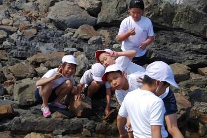 急な変更でしたが,子どもたちはすぐに着替え,浜へ出発。そこでは,魚を見つけたり,貝,カニなどの生物を観察したりして満足そうでした。