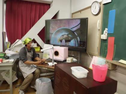 1年生は,お魚を上手に食べられるように担任の先生に説明してもらいながら骨を取りました。