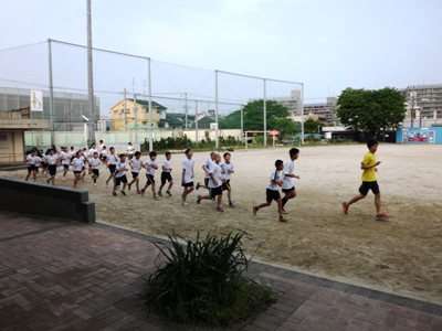 大勢で走る速さを合わせて,アップしている子どもたちを見ていて,心の中で「がんばれ」と応援しています。始まって日は浅いですが,この人数をずうっと続けて練習に励んでほしいと思っています。