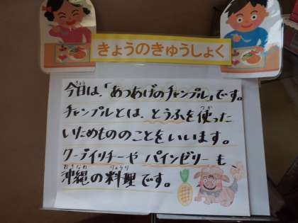 今日の給食は沖縄の料理がテーマです。