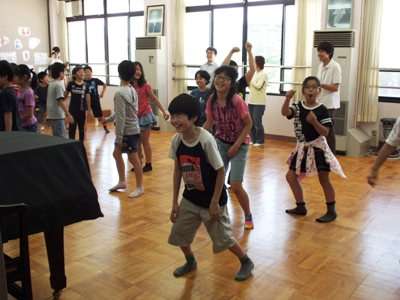 アイコンタクトやゾンビのゲーム,最後はグループで音楽に合わせてふりを考え,みんなで踊ることもしました。踊りでは,思い切り体を動かす子どももいて,笑いの中で授業を終えました。