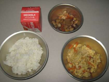 今日の給食は,ごはん・牛乳・あげたま煮・とら豆の五目煮でした。あげたま煮は,野菜を煮た中に別にたいておいた油あげとあわせ,最後に卵でとじます。少し甘い味でごはんとよく合います。とら豆の五目煮は,とら豆・鶏肉・ちくわ・人参・こんにゃくと五つのの材料が入っていました。