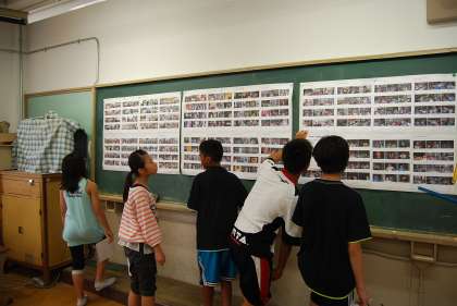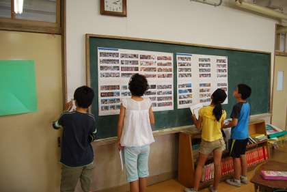 6年生の隣の総合教室には修学旅行の写真が展示されています。