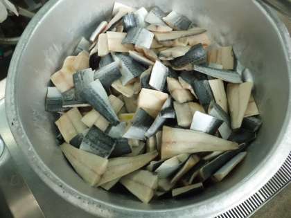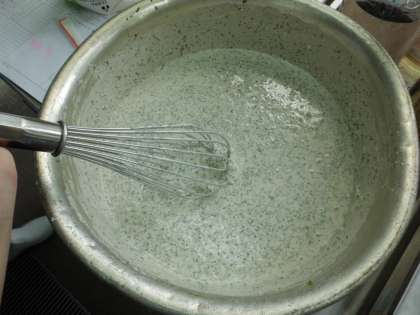 さわらの香草あげは,小麦粉を水でといた衣に,みじん切りにしたパセリとバジルを混ぜ込んで香りをつけて揚げました。