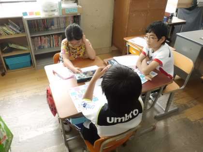 自分で考えた後,班の友だちと考えを交流しました。