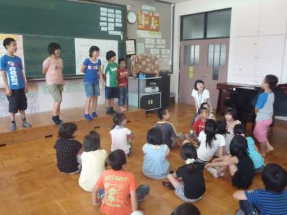 今日はえのき学級と3年生で七夕パーティーを開きました。パーティーではえのき学級が司会をして,歌を歌ったり,「猛獣狩りに行こうよ」というゲームをしたりしました。最後にはえのき学級が作ったフルーツポンチをみんなで食べました。3年生もえのき学級もみんなノリノリで楽しんだパーティーになりました。今回のパーティーで飾った短冊はしばらく廊下に飾っておきます。みんなの将来の夢や今年の目標は読んでいると元気になれます。
