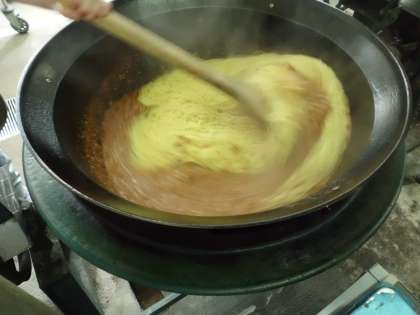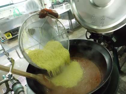 大きなお釜に火をつけると、みるみるうちにサウナのように暑くなりますが、調理員さんも子どもたちにおいしい給食を作るために頑張っています☆