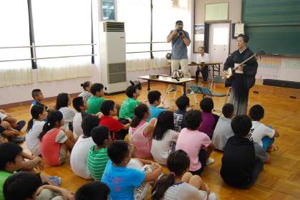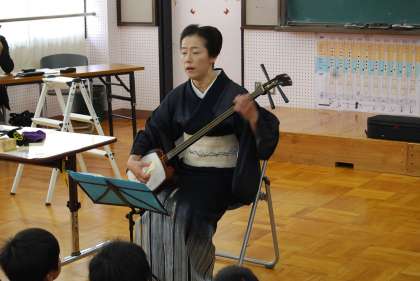 今日学校に講師としてお招きしたのは三味線の語りべ