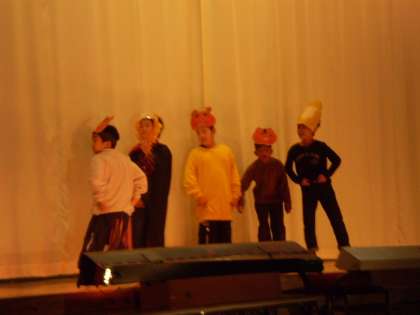 途中、体調不良で欠席が増え、代役での練習の時間が続き、本番はどうなることかと心配しましたが、当日は全員出席。見事に劇を成功させました。