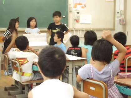 明日,生活科で育ているトマトを使って,パーティをします。1年生を招待します。今日は,トマトクイズを練習です。明日は,楽しい時間になりそうです。