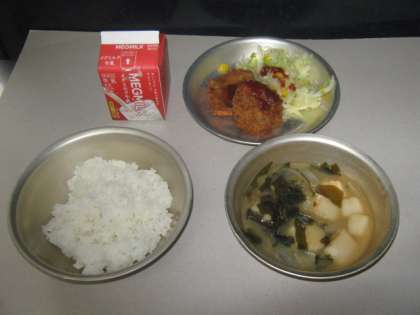 今日の給食は,ごはん・牛乳・ヒレカツ・ソティ・みそ汁の献立で,給食感謝の行事献立でした。ヒレカツはとても楽しみにしていた献立で,「おいしい・・」「やわらかい・・」などといいながら食べていました。子どもたちの好きなメニューだったので,早く食べ終わる事ができました。ソティもヒレカツのソースをかけてたべました。