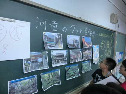 そして黒板にはったお話にでてくる背景の写真を