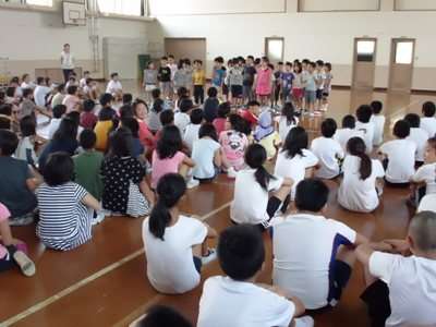 9日(月)にこにこ集会がありました。1年生の発表でした。4月に入学して,学校の生活に慣れた1年生の子どもたち。できるようになったことが増えてうれしいことやみんなで「おおきなかぶ」を役割分担をして,はっきり口をあけて発表することができました。また,その発表に対して2年生の方からコメントをすることもできました。