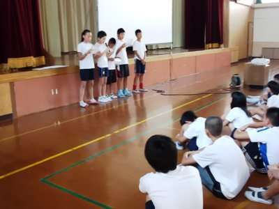 その後,児童会代表から水曜日の「クリーンキャンペーン」への参加についてのお願いと9月の目標についての話がありました。