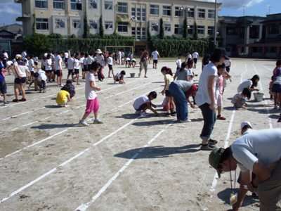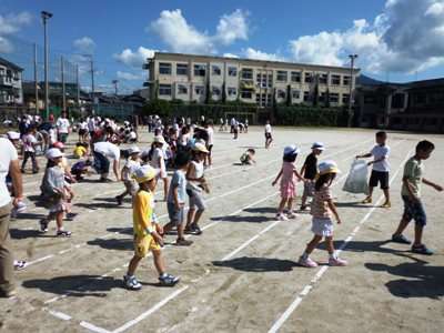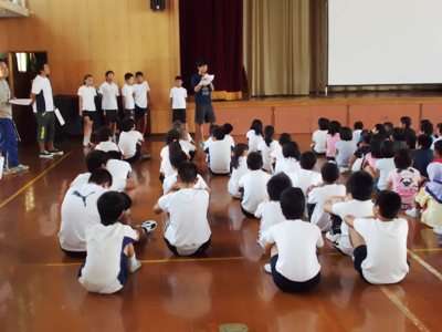 にこにこ集会のあと,担当から石拾いについての説明がありました。運動委員会の子どもたちが活動の中心となって,運動場の石拾いと草むしりを学年ごとにすすめていきました。たくさんの石を拾うことができ,運動会がより安全にすすめられます。