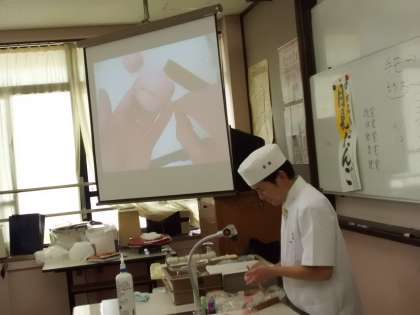 今日は職人さんに来ていただき,和菓子作り体験をしました。