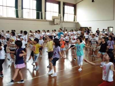 低学年の子どもたちもとっても楽しそうに体を動かしていきます。また,音楽に合わせてもとても上手です。少しずつ,練習をすすめていきます。次はどんな振り付けなのか楽しみです。