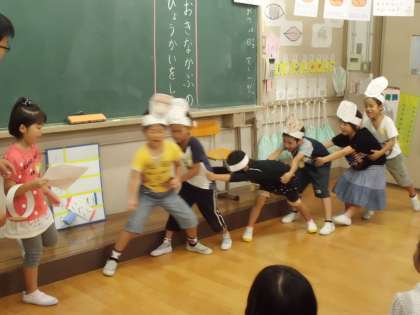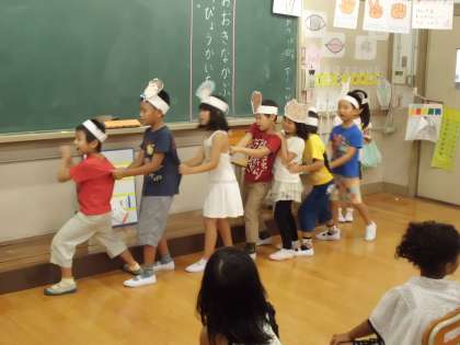 大きなかぶの発表会をしました。大きな声が教室いっぱいに広がりました。動きもそれぞれ工夫していました。かぶが抜けた後の演技も抜群でした。すてきな発表会になりました。