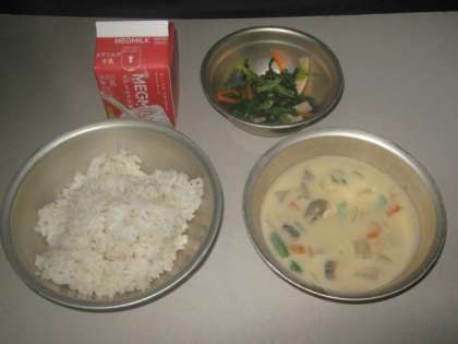 今日のシチューは,ごはんにもよく合うようにと,味付けに白みそを入れました。大根ともよく合い,いつものシチューより,まったりとした味に仕上がり好評でした。