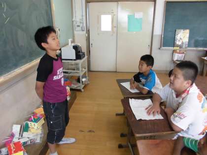 2人組で聞きあいながら覚える子。