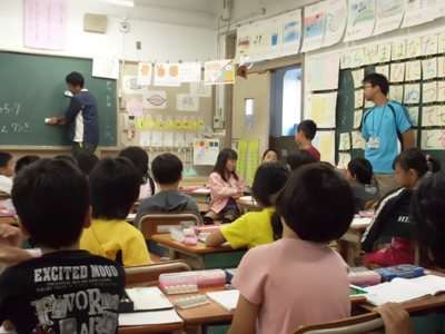 算数の時間で4−2+5という立式の発表があり,どうしてこのような式で表せるのかを考えていました。「2ひきバスからおりていったから」「また5ひきバスに乗ってきたから」など,子どもたちの言葉でうまく説明していました。
