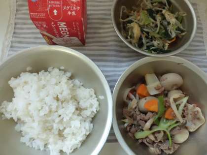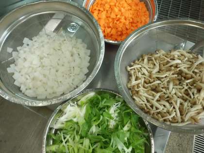 地方によって使う具材は様々ですが,給食では,牛肉・にんじん・さといも・白ねぎ・しめじ・こんにゃくなどを入れ,とっても具だくさんな仕上がりになりました☆