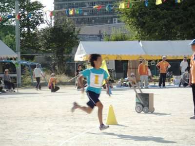写真はブロック対抗リレーです。参加のみなさんには大きなけががなく楽しく一日を過ごすことができて,とてもよかったです。日ごろから様々なスポーツ活動を通して,校区民のみなさんの健康づくり,絆づくりに努めていただいています体育振興会の皆様,関係の方々,準備から後片付けを含めましてお世話になりました。ありがとうございました。