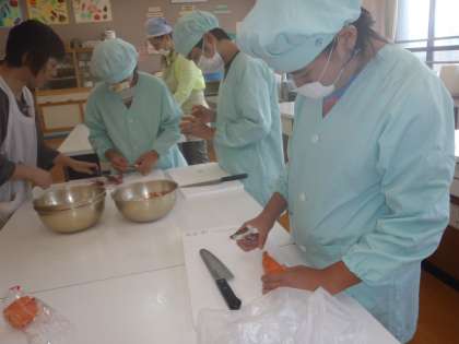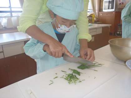 昨日から後期が始まりました。そして今日は「後期がんばる会」としてチヂミ作りをして後期のはじめの一歩をみんなで楽しく踏み出しました。チヂミ作りではこれまでにえのき学級の畑で作っていたニラを使い,調理は「コリアみんぞく学級」のちえ先生が手伝ってくださいました。