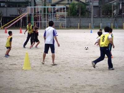朝からの天気がよくなくて,運動場の状態が悪かったため,練習ができるかどうか気にしている子どもが多くいましたが,何とか水が引き,練習をすることができました。少ない人数ながら試合形式の練習でよいプレーを見せてくれました。